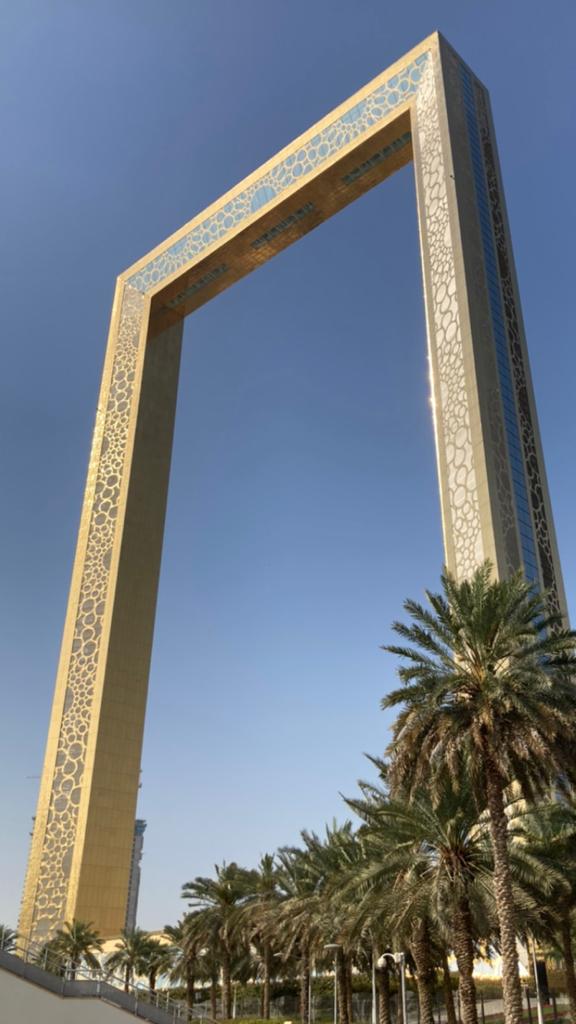 Inaugurada em 2018, essa é a maior moldura do mundo. Com seus 150 metros de altura, é realmente uma obra deslumbrante. Um elevador leva os visitantes até o topo onde está uma ponte toda de vidro com 93 metros de comprimento e um painel de vidro de 25m² no meio oferecendo uma ótima vista de 360 graus. De um lado, a vista para o passado, para o antigo bairro de Deira, do outro, a parte moderna de Dubai de onde se vê o Burj Khalifa e outros edifícios. Para quem tiver medo de altura, não precisa se preocupar. A estrutura é bem solida, pois foi construída com vidro, aço, alumínio e concreto armado. Na saída, o visitante é acompanhado a uma sala no térreo com painel panorâmico onde se assiste a um filme sobre o futuro de Dubai e como a tecnologia terá um grande impacto em nossas vidas para melhor, sobretudo na área de locomoção e de saúde.