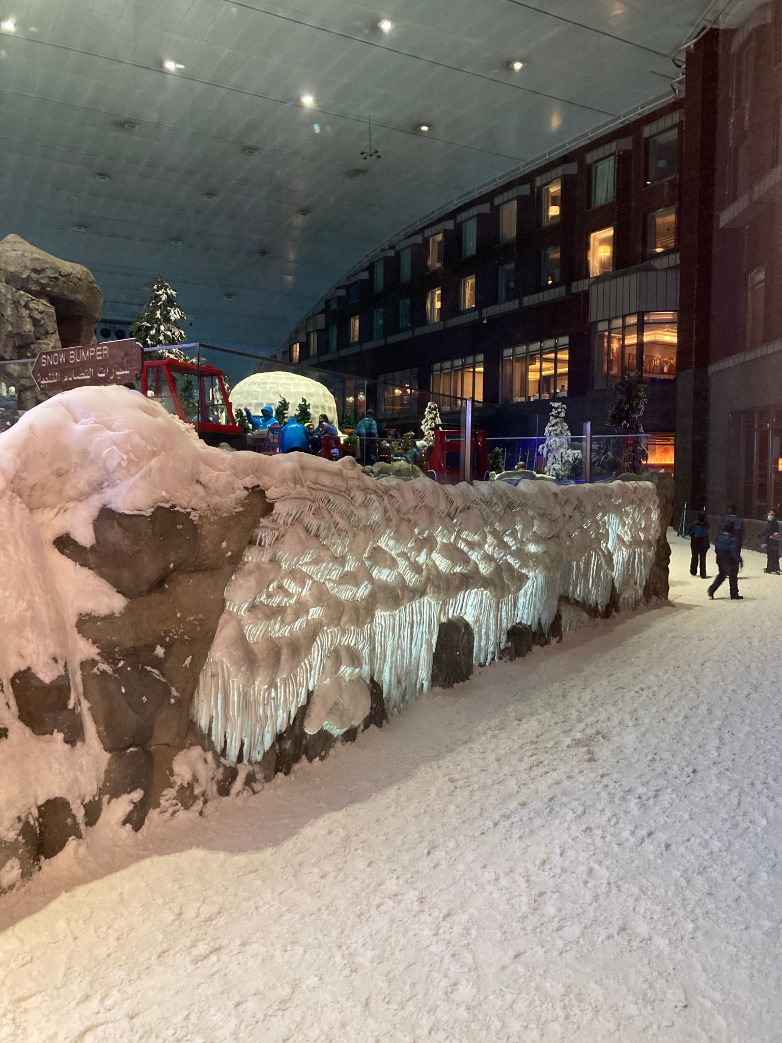 Mesmo quando as temperaturas lá fora estiverem altíssimas, sempre haverá neve fresca e a temperatura interna estará entre -1 e -2 graus Celsius. Com 85 metros de altura e 80 metros de largura, cinco pistas de esqui, sendo a mais longa com mais de 396 metros e com uma queda vertical de 60 metros, um teleférico para 4 pessoas, uma zona de snowboard free style e 2 skilifts, espaço para corridas de tobogã e a primeira pista preta de esqui em um ambiente fechado no Oriente Médio, o complexo realmente impressiona. Ski Dubai providencia os equipamentos de esqui, de snowboard e as roupas, mas é necessário comprar as luvas e o gorro, caso não tiver.