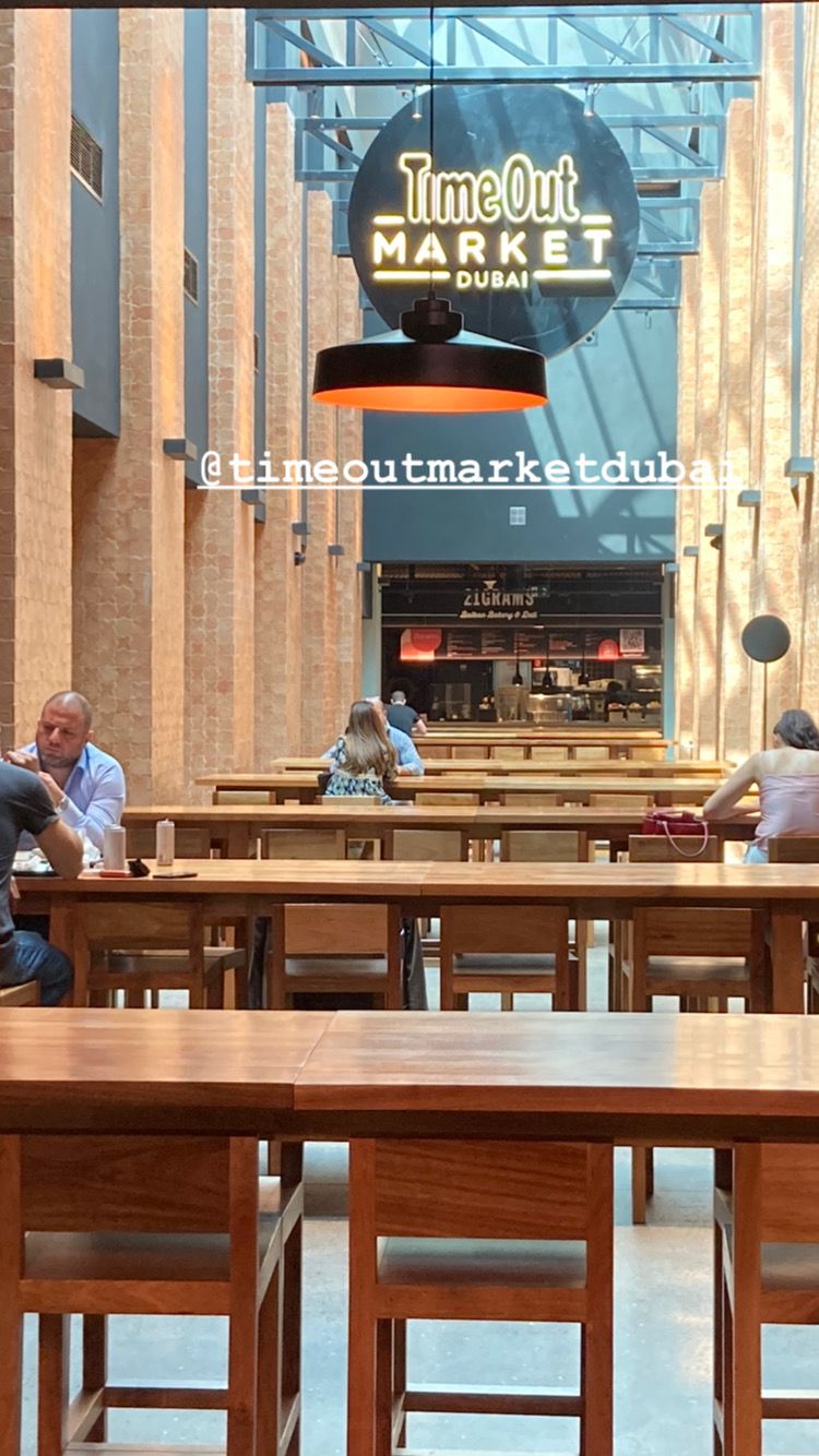 É o lugar ideal para quem quer comer uma excelente comida de várias partes do mundo sem gastar muito. As mesas são comunitárias, portanto se recomenda chegar cedo para obter um lugar sobretudo nos finais de semana. Time Out Market Dubai é o lugar perfeito para assistir ao show das águas da Dubai Fountain e ver o Burj Khalifa. O Time Out Market se encontra também nas cidades de Lisboa, Montréal, Chicago, Boston, New York e Miami.
