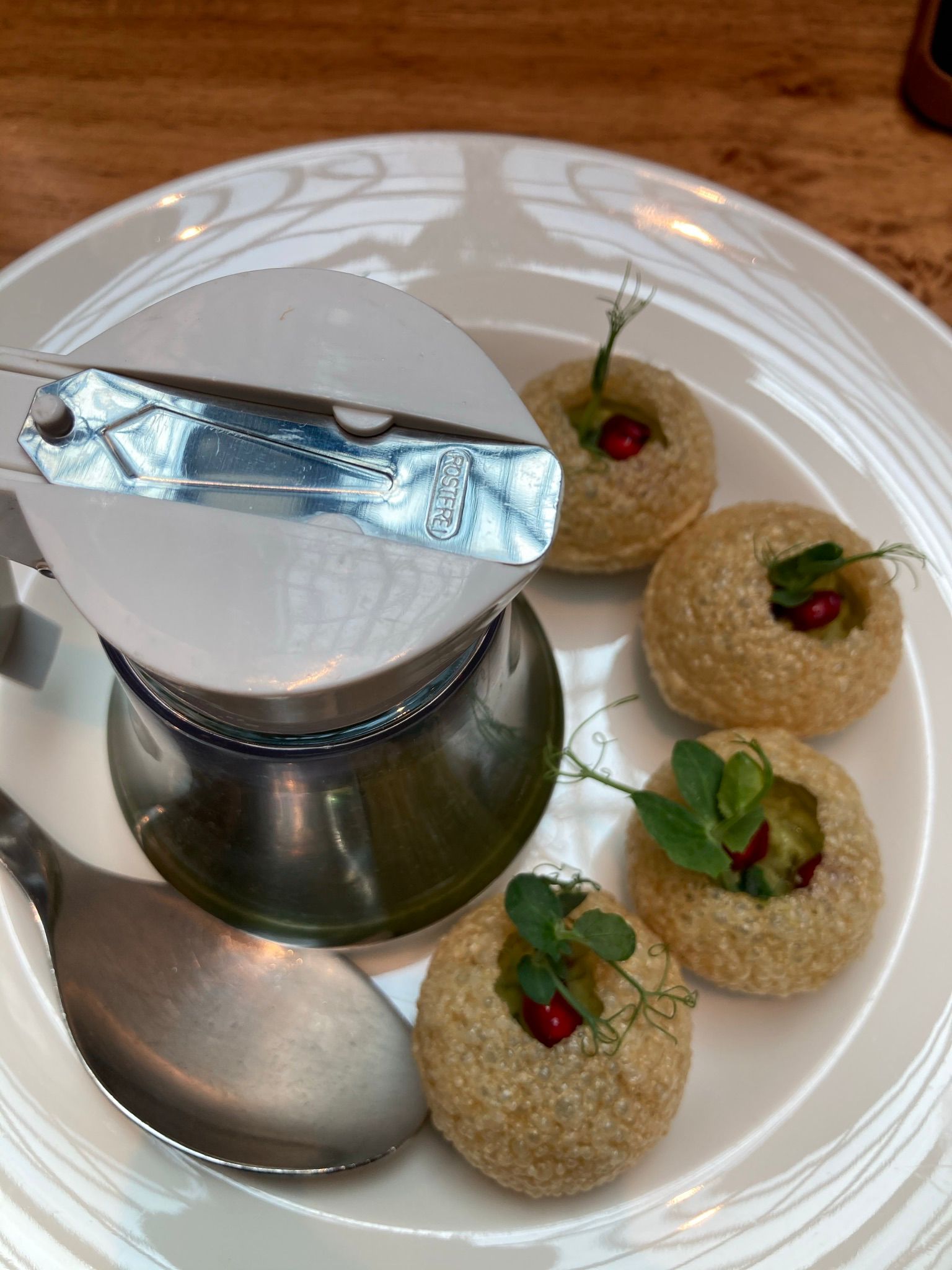 Quando o queridinho chefe Prashant Chipkar abriu o restaurante em La Mer, a famosa praia de Dubai, foi um enorme sucesso. Esse restaurante serve uma comida indiana-fusão, uma culinária indiana inovadora e saborosa. O restaurante não serve comida tradicional indiana e é bem disputado entre os locais. Famoso pelo “tuna bhel tartare” e os drinques inovadores, os pratos escolhidos aqui foram “pani puri” e “paneer tikka”. Imperdíveis.