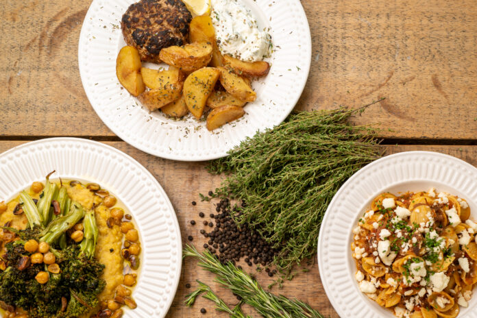 Entre os principais vale o Papoutsakia (berinjela recheada com batata, ragu de carne, berinjela e bechamel, para os vegetarianos), o Gemista (tomate recheado com arroz, ragu de carne e especiarias ou o Brocollo (brócolis grelhado, grão de bico e pistache, para veganos). E de sobremesa torta de chocolate e creme.