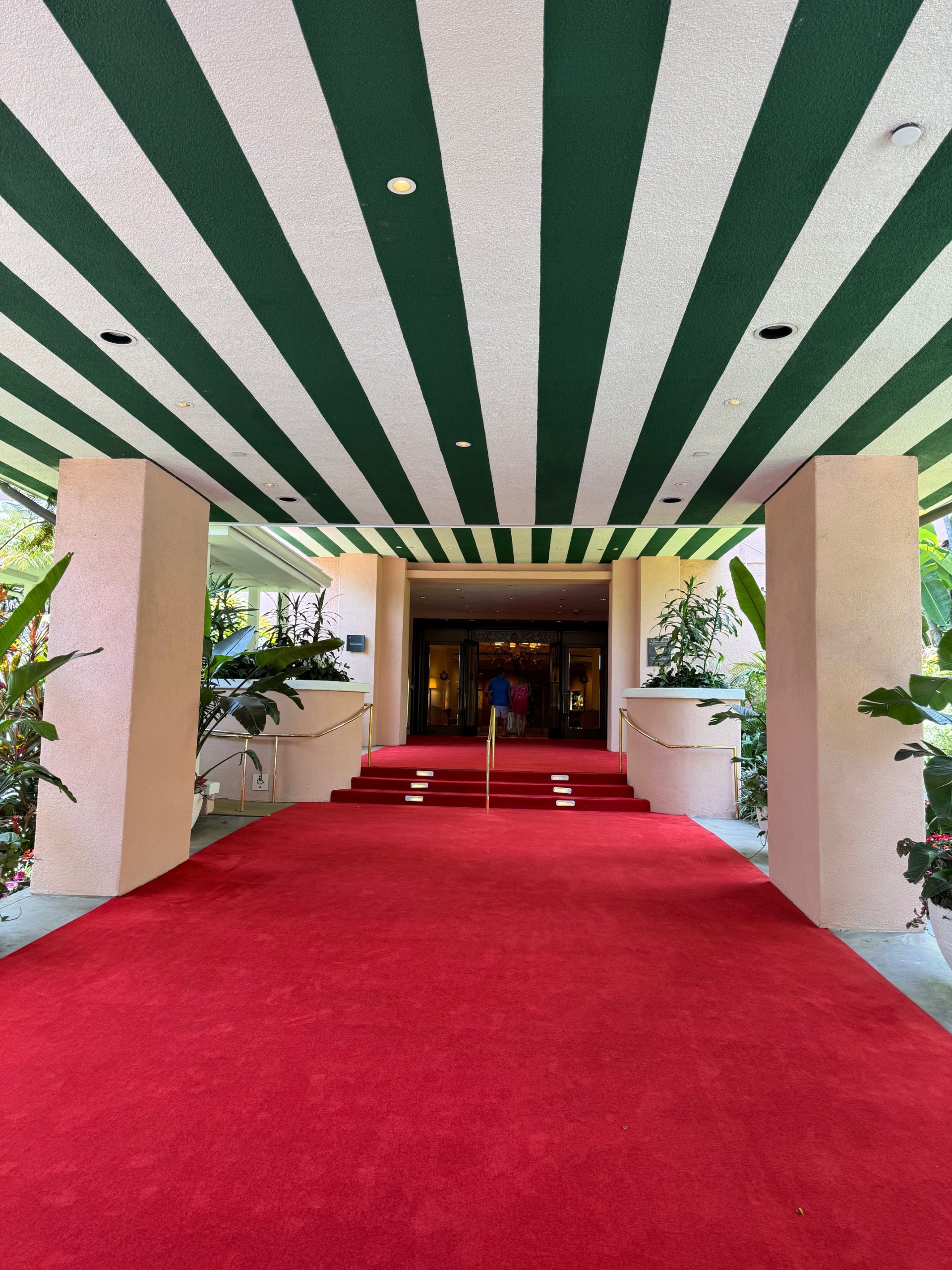 Pintado em um tom inconfundível de rosa e ladeado por palmeiras majestosas — algumas desenhadas nas paredes, outras plantadas nos jardins —, o hotel é palco de festas memoráveis, como o pós-Oscar da Vanity Fair. O tapete vermelho que se estende na entrada faz qualquer visitante sentir-se estrela de cinema.
